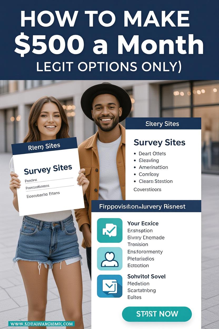 Image Suggestion: Person completing surveys on a laptop with dollar signs overlay (Alt Text: How to make $500 a month with survey sites legit options).